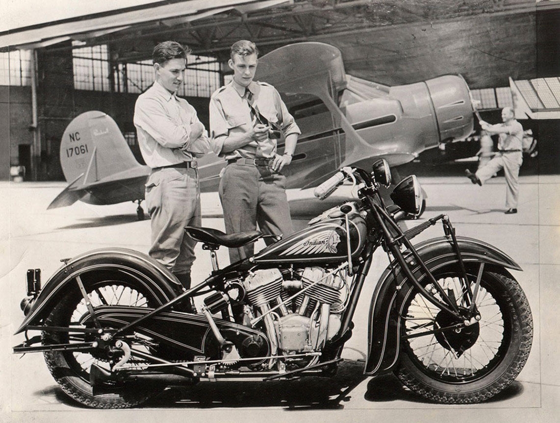 Das Jahr 1921 markiert das Debüt der Indian Motorcycle Chief. Entworfen vom legendären Charles Franklin, dem Rennfahrer und Ingenieur, der auch die Scout erfunden hatte, verfügte die Chief über einen 61-Kubikzoll-V-Twin, doppelte Nockenwellen, einen niedrigen Sitz und anmutige Linien. Die Fahrer liebten die zuverlässige Leistung, das beeindruckende Drehmoment und ihre Agilität, und das Motorrad gewann schnell Fans auf der ganzen Welt. In den 1940er Jahren trug der Chief dazu bei, die Nachkriegsära der Motorradrennen und des Customizings in Amerika zu befeuern.